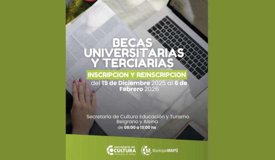La Secretaría de Cultura, Educación y Turismo informa que a partir del 15 de diciembre, en el horario de 8:00 a 13:00 horas, se encuentran disponibles los formularios de inscripción y la ordenanza con los requisitos para acceder a la Beca Municipal 2026.