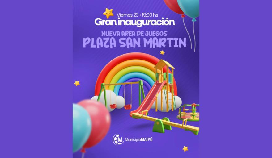 Este viernes 23, a partir de las 19:00 horas, se realizará la inauguración del área de juegos de Plaza San Martín, que fue renovada tras varias semanas de planificación y trabajos de obra.