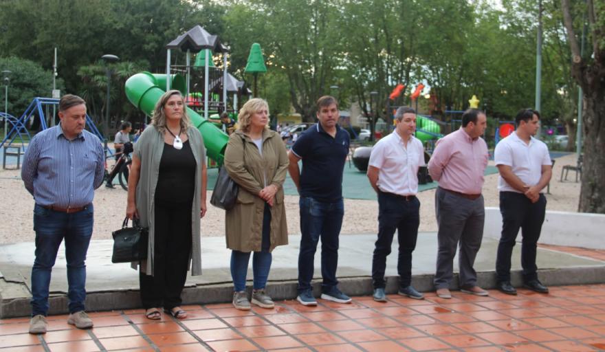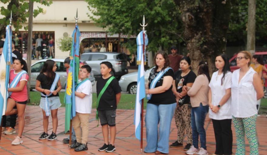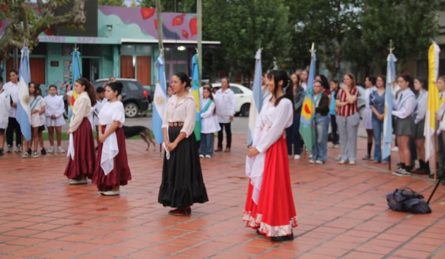 El acto incluyó además la participación del Coro Municipal, dirigido por Laureano Blanes, una presentación artística a cargo de Yamila Pelliza junto a Daniel Pelliza, y la actuación del grupo de danzas de la Escuela Nº 1.