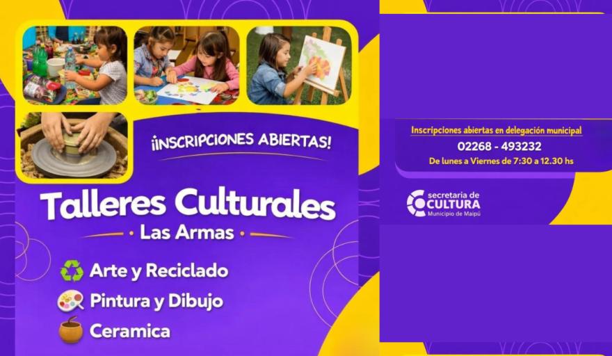 El Municipio de Maipú, a través de la Secretaría de Cultura, informó que se encuentran abiertas las inscripciones para los talleres culturales que se dictarán en la localidad de Las Armas.