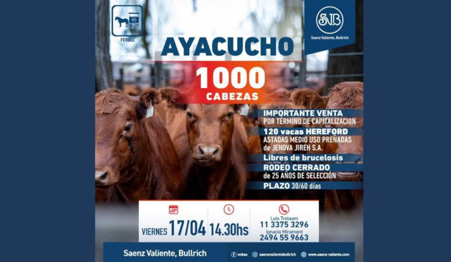 Este viernes se llevará adelante un importante remate feria en la ciudad de Ayacucho, organizado por la firma Saenz Valiente Bullrich, con una oferta que supera las 1000 cabezas y una variada disponibilidad de hacienda para distintos perfiles de productores.